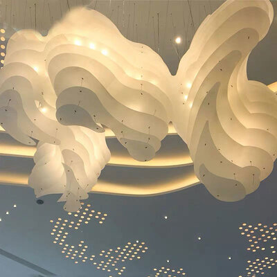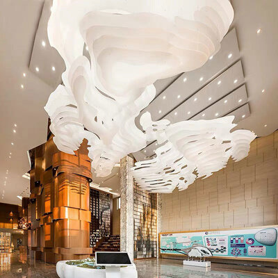 Ce plafond artistique en ruban d'acrylique sur mesure est un spectacle qui allie harmonieusement éclairage fonctionnel et esthétique spatiale pour les espaces commerciaux. Fabriqué à partir de centaines de panneaux d'acrylique thermoformés avec précision, il forme une structure suspendue, semblable à un nuage, qui s'affranchit de la platitude des plafonds traditionnels, transformant l'espace aérien en une sculpture dynamique et fluide.