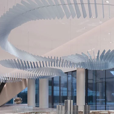 Chaque détail, de la courbure et de la taille des panneaux individuels à la portée globale et à la hauteur de l'installation, peut être adapté à la hauteur du plafond de l'espace, au style de conception et à l'identité de la marque. Qu'il s'agisse des "nuages fluides" d'un hall d'hôtel ou des "rubans dynamiques" d'une galerie de vente, il devient une extension tridimensionnelle du récit de la marque.